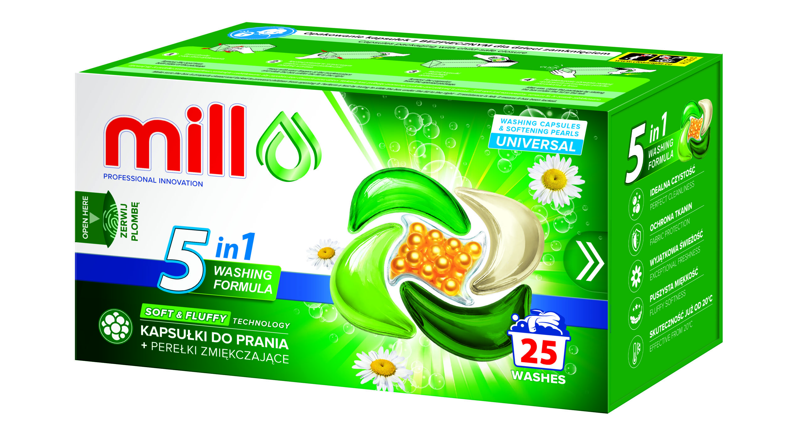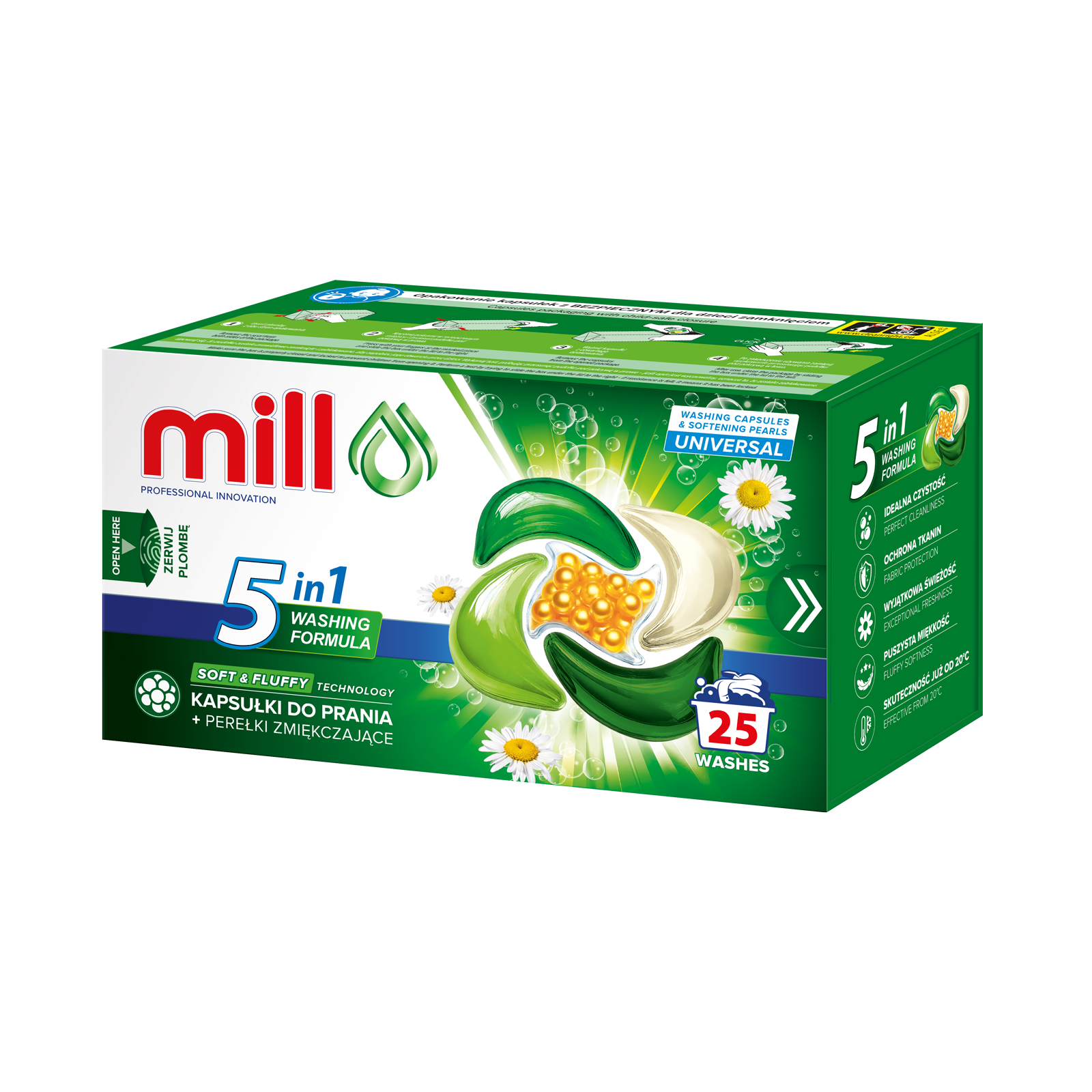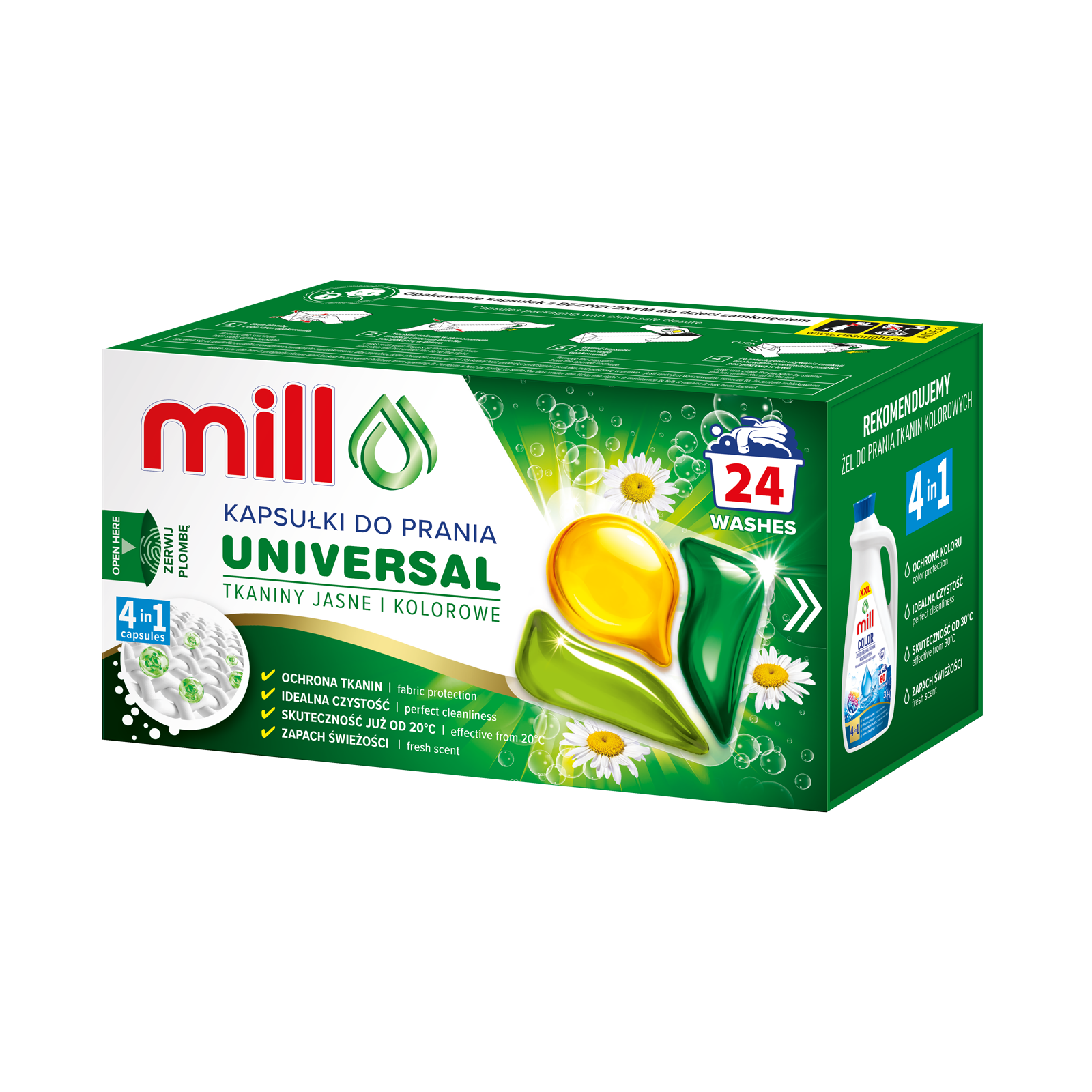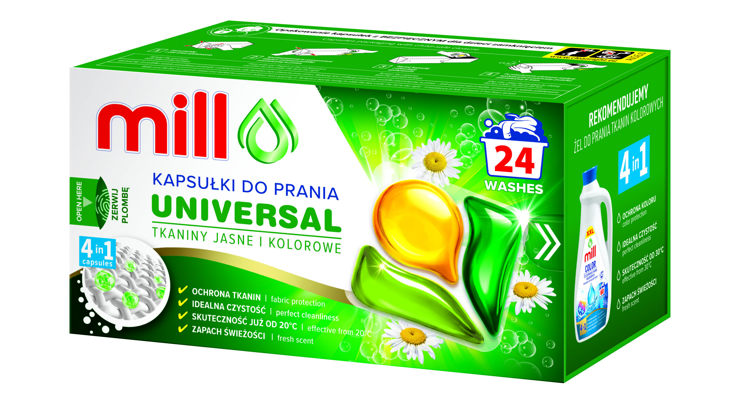 MILL Kapsułki do prania uniwersalne ZIELONA HERBATA 50szt. 3K.S