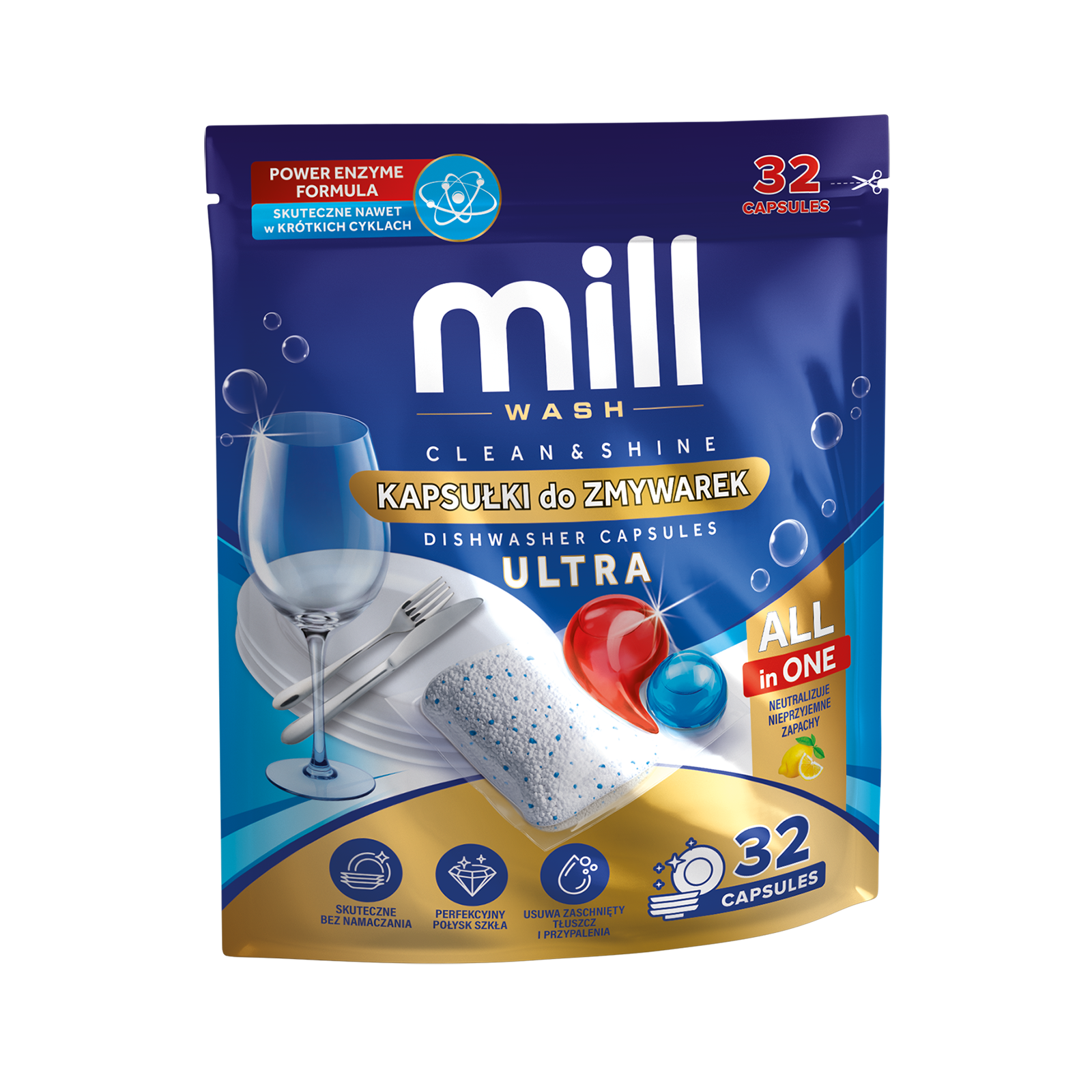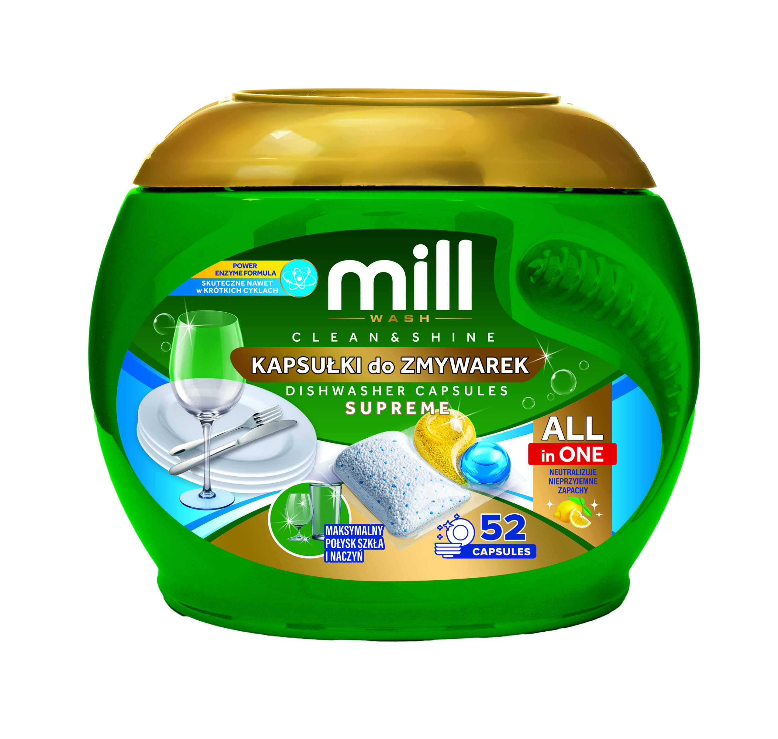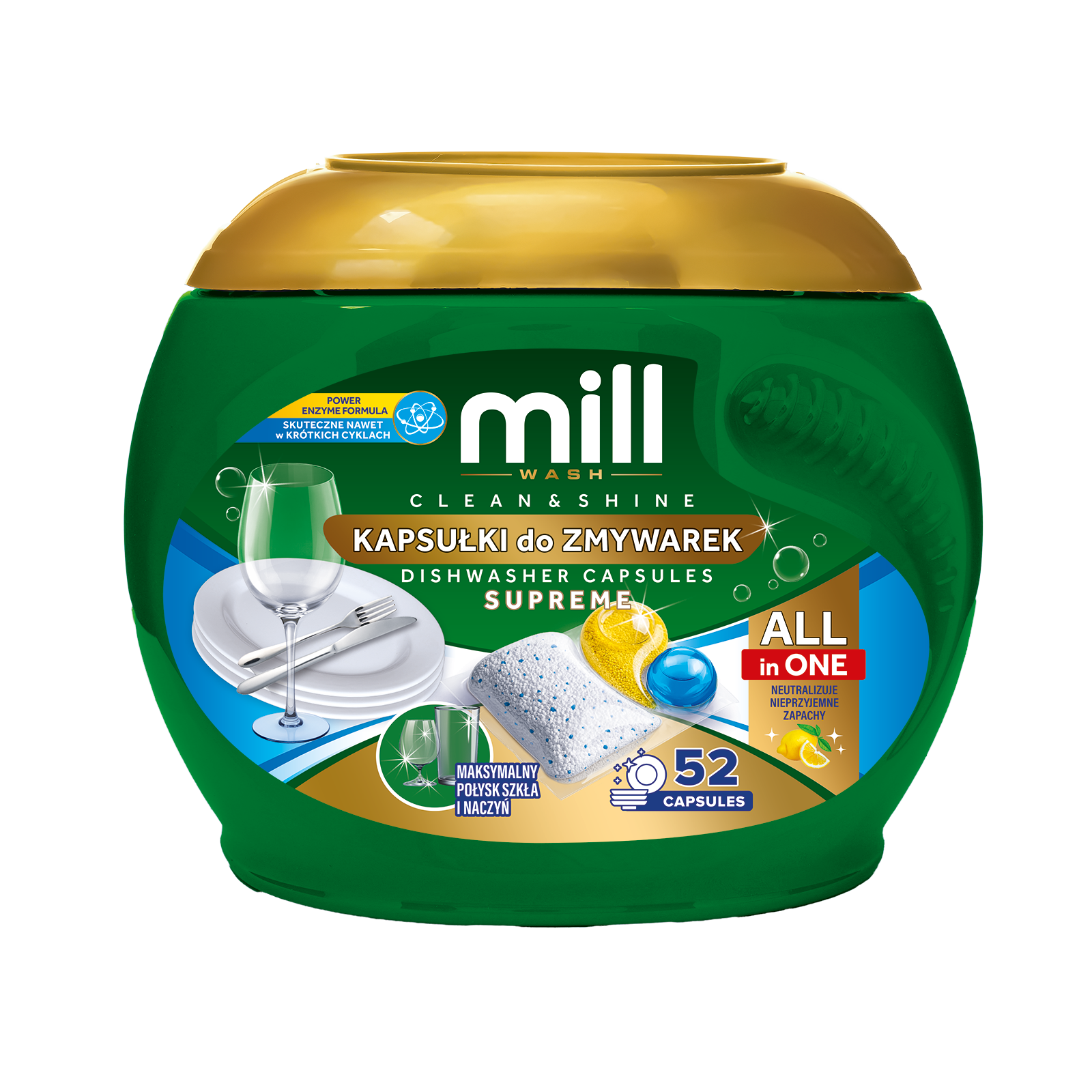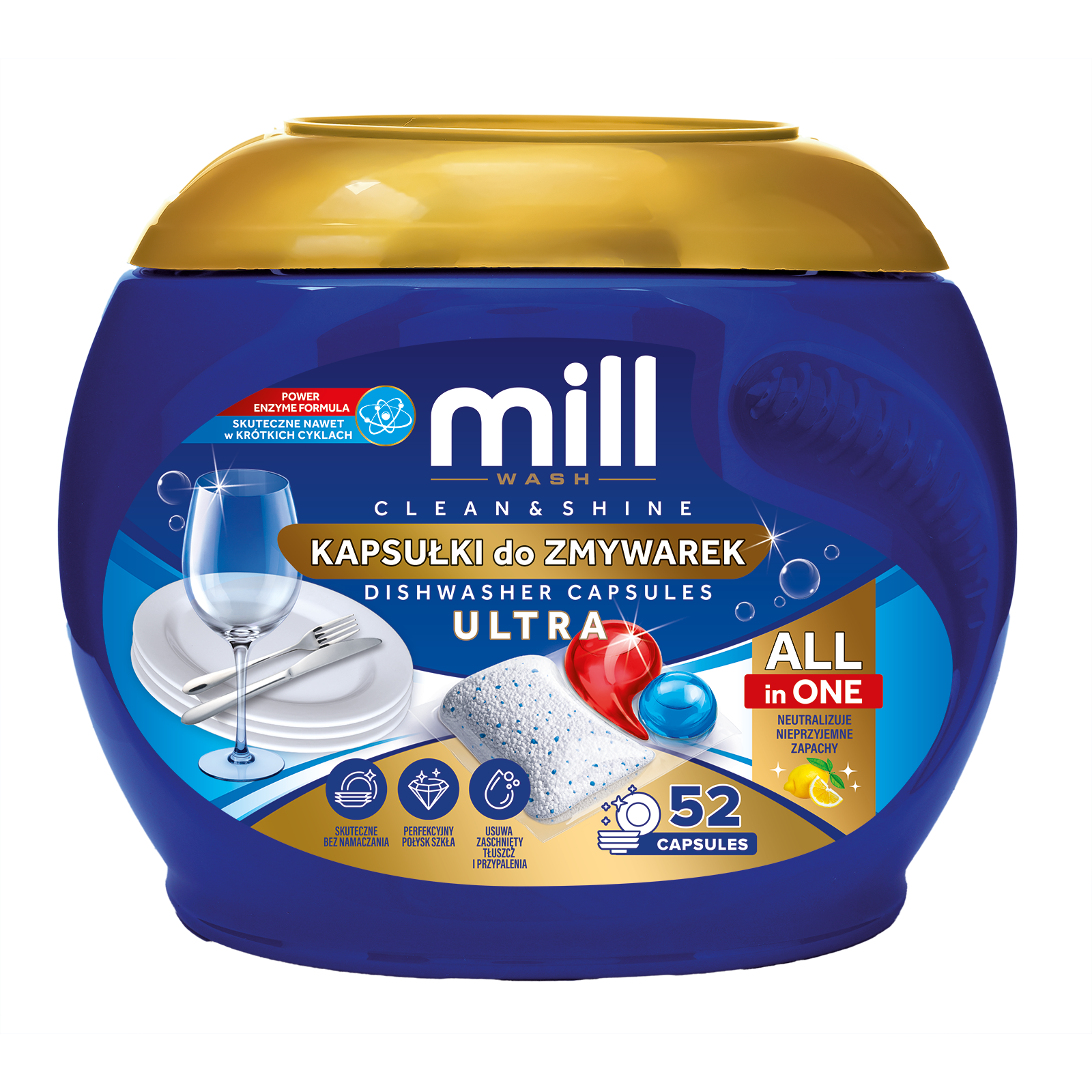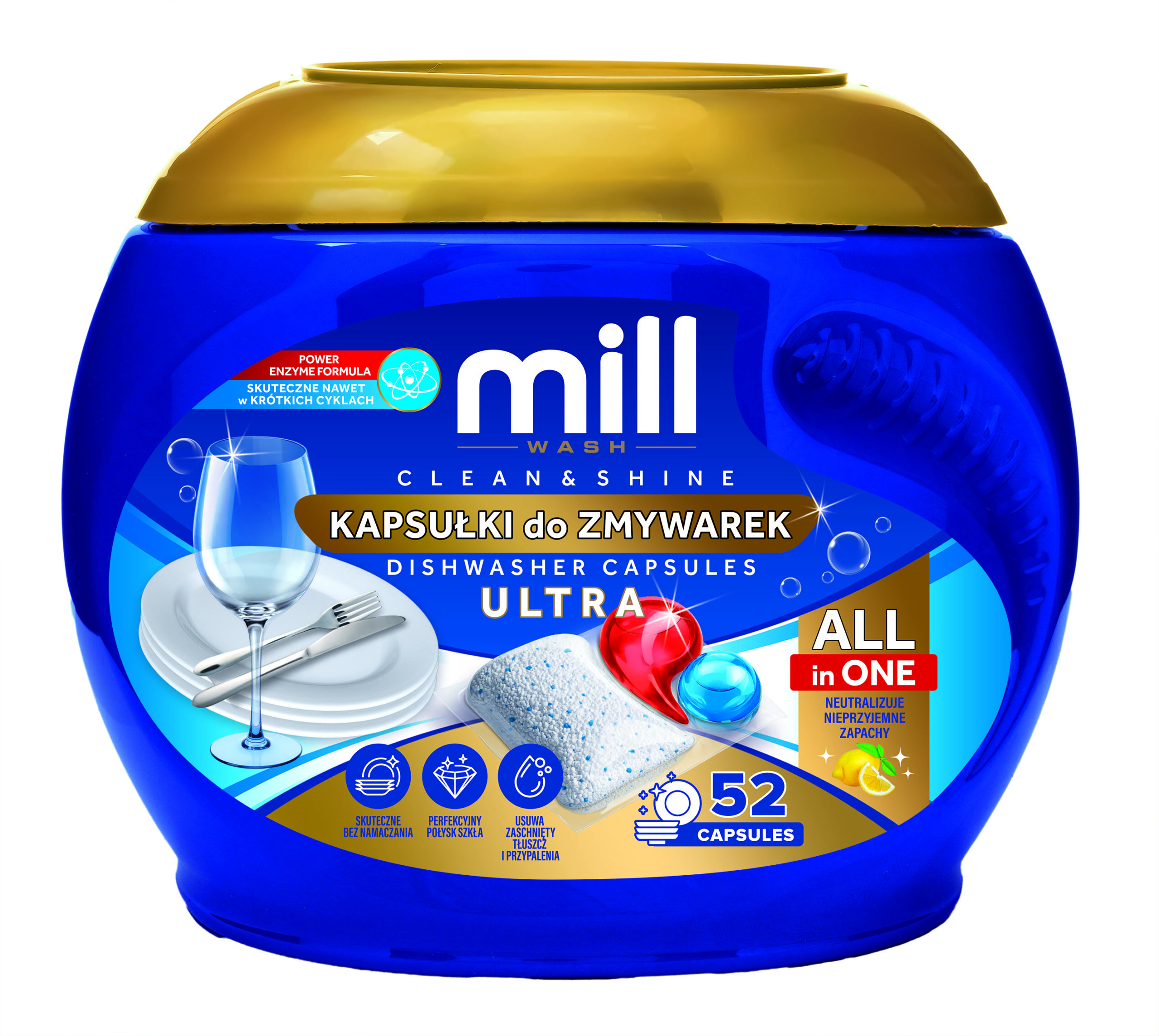 MILL Kapsułki do zmywarek CLEAN&SHINE Ultra 52 szt. 3K.S (PL, EN)