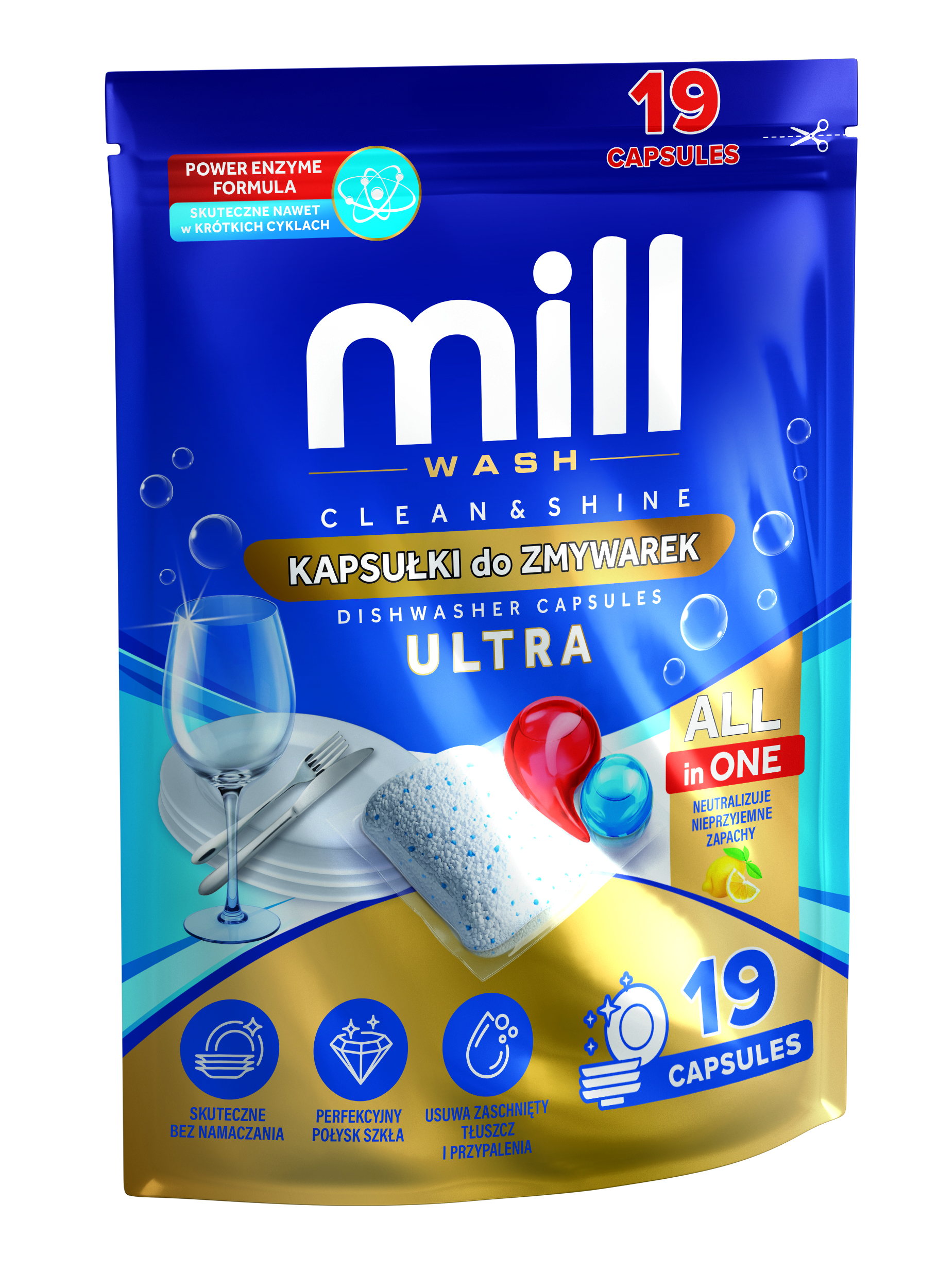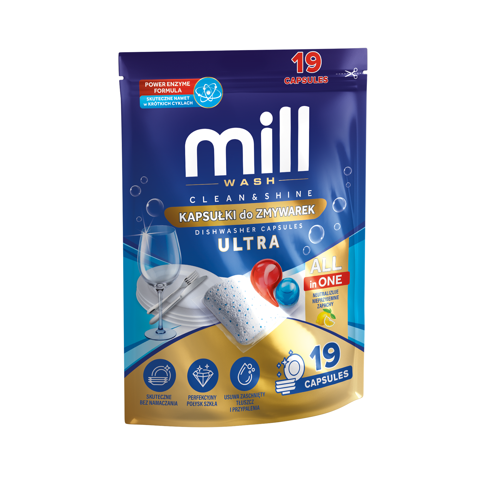 MILL Kapsułki do zmywarek CLEAN&SHINE Ultra 19 szt. 3K.D